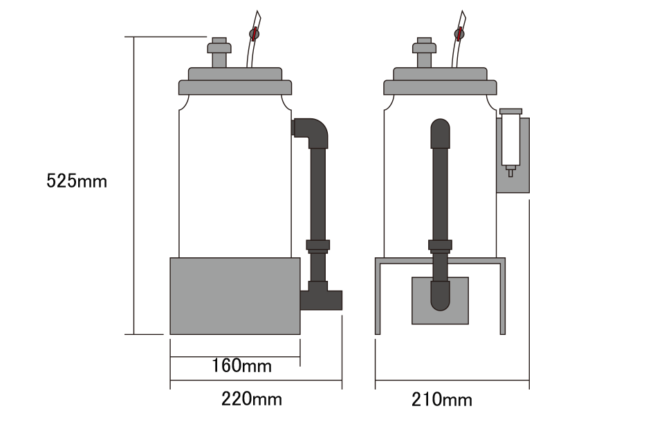 ※H&S製カルシウムリアクターはすべてハンドメイドで製作されているため、寸法図の数値に誤差が生じる場合があります。数値はあくまでも目安としてご参照下さい。