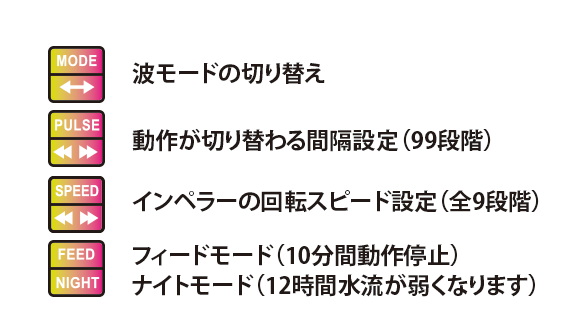 ・インペラーの回転スピード、間欠の間隔も個別で調整可能。