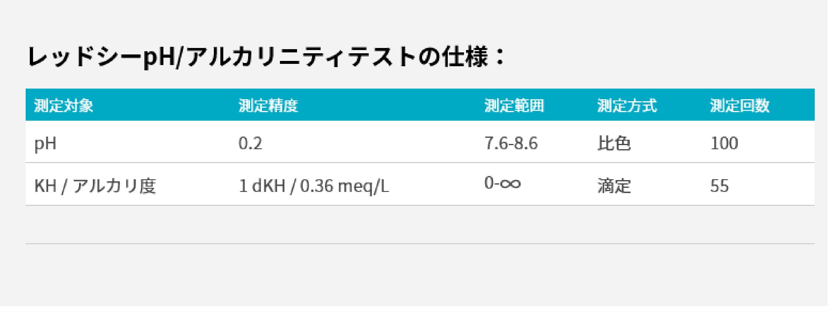 pHを100回、KHを55回測定できます。