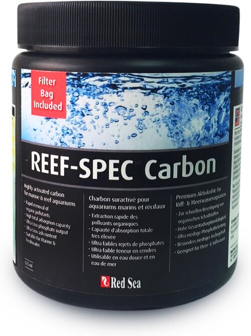 レッドシーの REEF-SPECカーボンの推奨使用量は、生体が適度に入ったリーフアクアリウムで1-2カ月間に水量200Lに対して50g(100ml)となります。